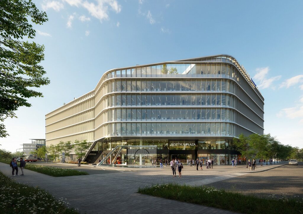 The seven-storey Roztyly Plaza office building has been chosen by the Czech developer of computer games SCS Software s.r.o. as its future headquarters. These creatives plan to move to the new and inspiring office space with an area of 10,000 m2 on the top three floors of the building right after its completion, i.e., at the beginning of 2024. Apart from offices, Roztyly Plaza will also offer the necessary civic amenities. In addition to the lobby, tenants will also be able to use a rooftop garden with gazebos and an outdoor kitchen for informal work meetings.